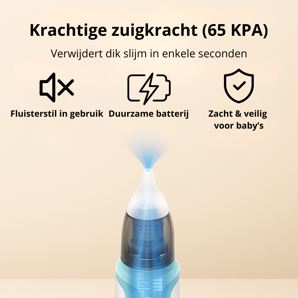 ✔️ Krachtige zuigkracht (65 KPA) – verwijdert zelfs dik slijm moeiteloos